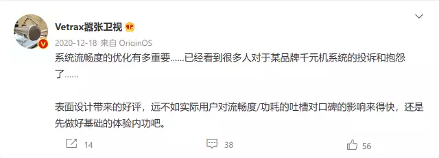 我妈的例子还好,因为 MIUI 10 并不是优化最差的版本。但是对于那些购买了出厂搭载 MIUI 12 的机型用户而言,就没那么幸运了。MIUI 12 的现状众所周知,如果一直不更新,肯定会存在体验问题,进而拉低小米手机在消费者中的形象。这完全是 MIUI 自己作,重视特效而轻视流畅度,还有一堆 bug。@Vetrax嚣张卫视 曾经 发微博 说,某品牌千元机(红米 Note 9)投诉声音比较大,(后半句是我说的)罪魁祸首就是 MIUI。**2022-03-08 更新:**结果今年 1 月她真的换上了 Note 9(